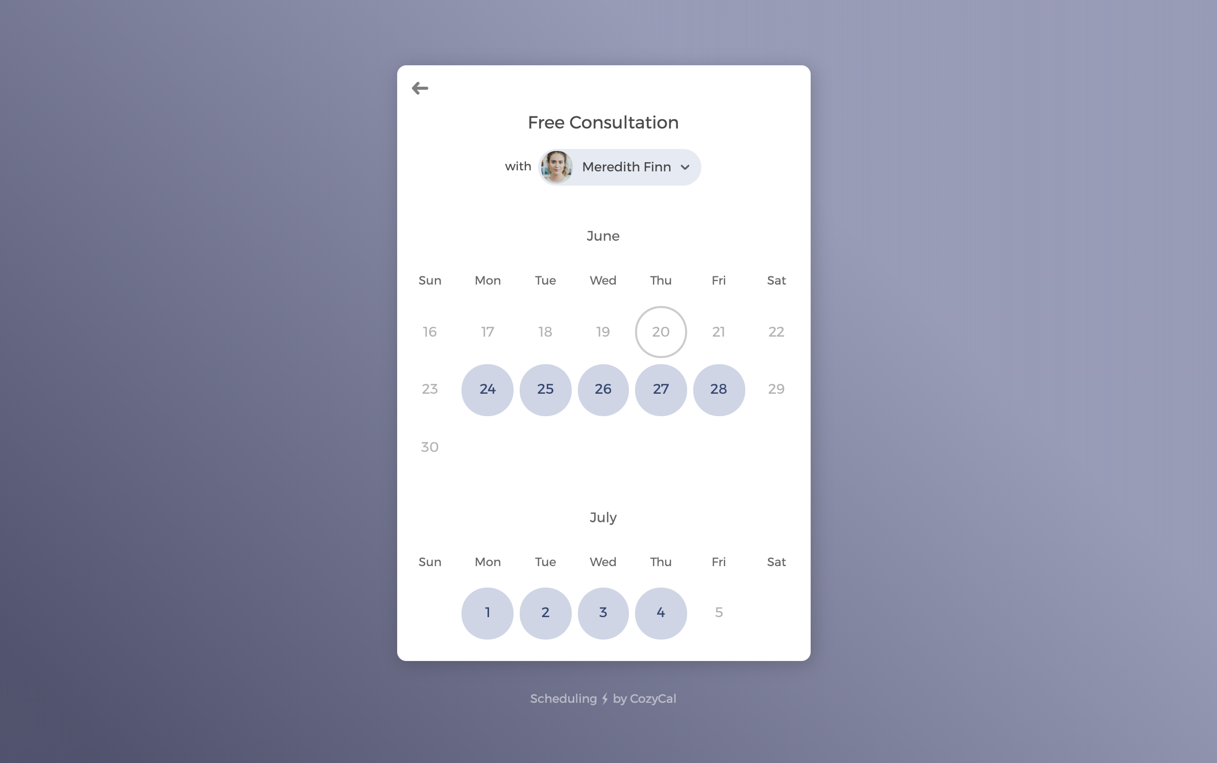 Install CozyCal on your website, and share a custom link