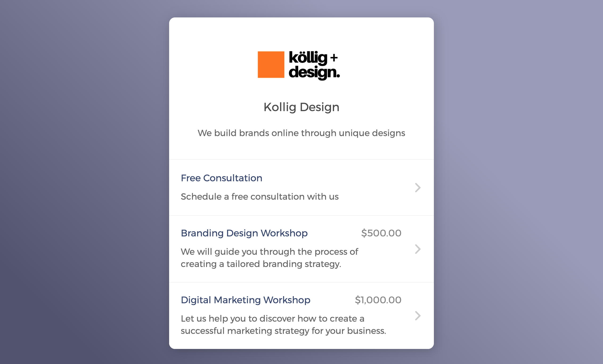 Manage availability and bookings for resources like meeting rooms, studio spaces, or equipment rental all under one account.