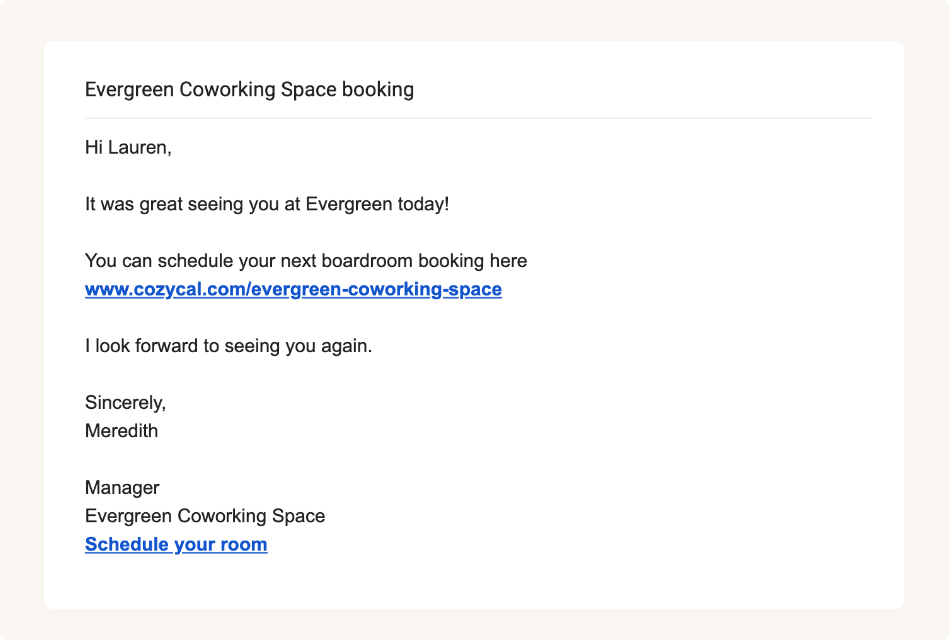 Whether it is in welcome emails or follow-up emails, you can incorporate your booking page's link as part of your email message and email signature to encourage more bookings.