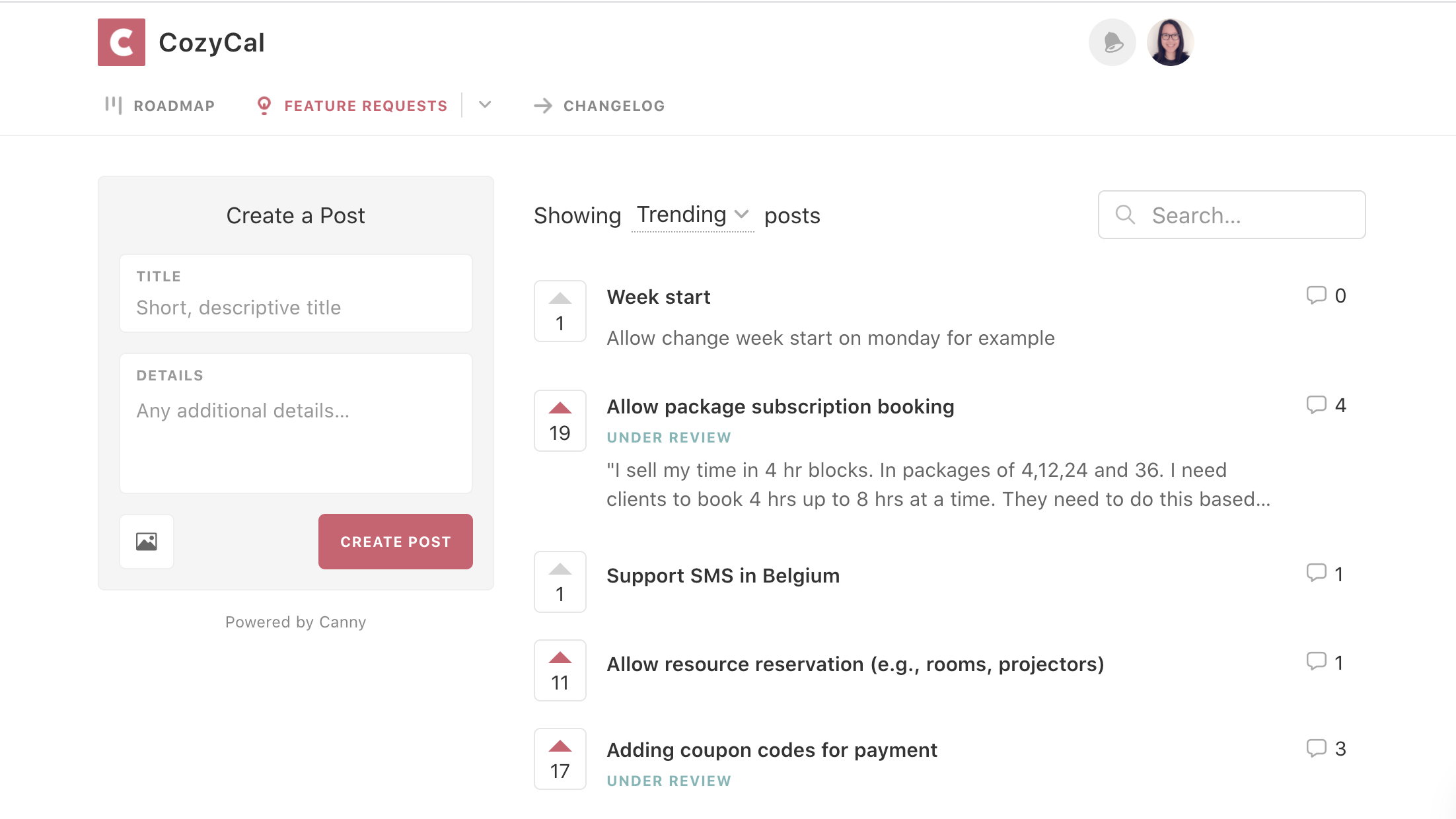 Two years ago, we created a public feature roadmap allowing users to share their feedback on CozyCal. The reason that has prompted us to do so is we want to build a user-centric product with a tight feedback loop.