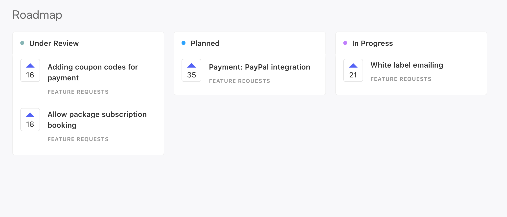 Now, with our feature roadmap in place, our users can submit new feature requests, upvote existing features, and track the development progress. Users are free to leave comments to elaborate specific needs and interact with other users in the community.