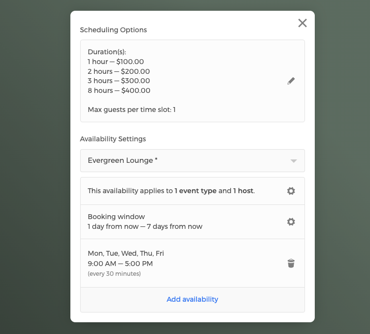 Set up one-on-one meetings or group events such as workshops, webinars and conferences to offer more booking options for your clients.