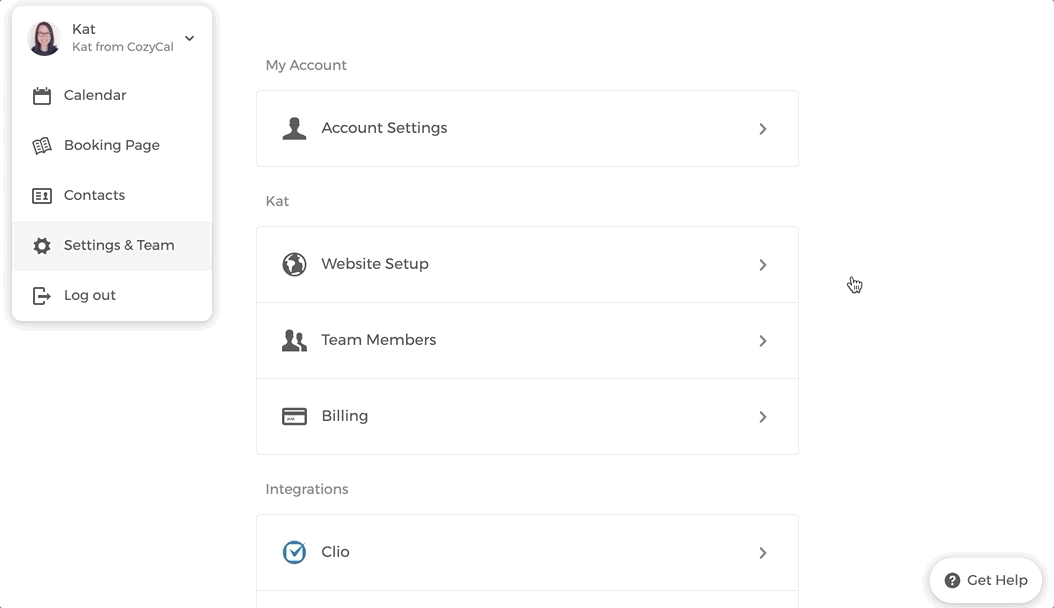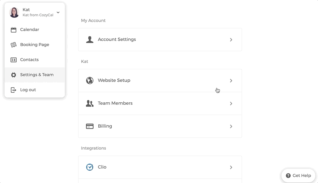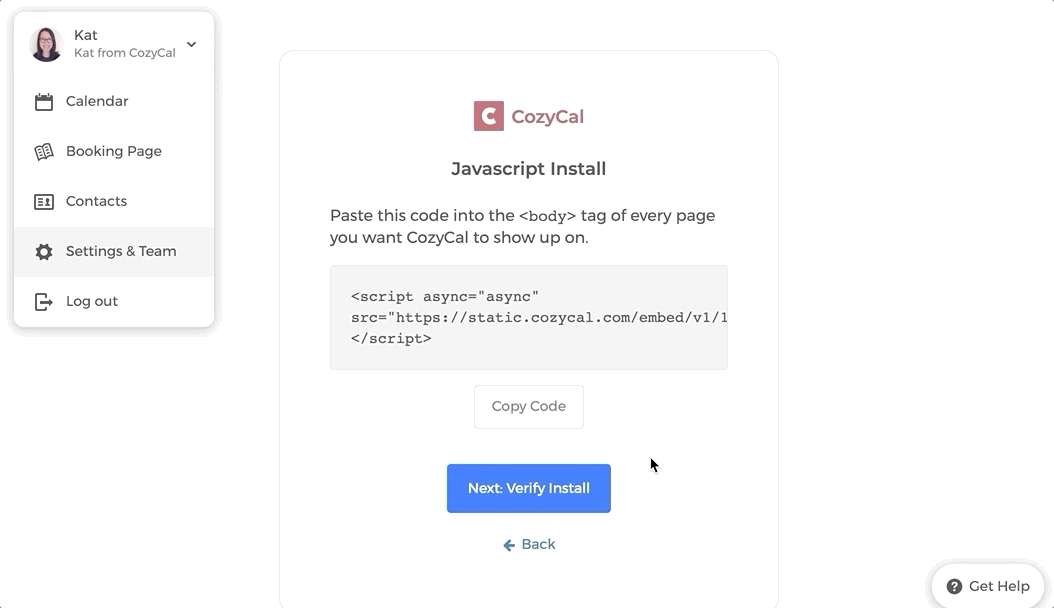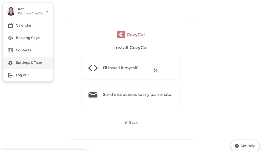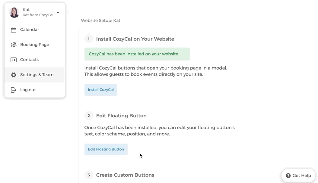 2. Go to Settings & Team → Website Setup → Install CozyCal