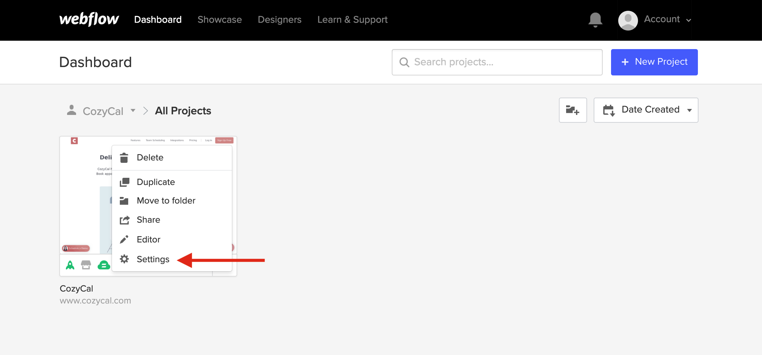 4. Log into your Webflow dashboard, then on the left hand side navigation bar, click on Settings .