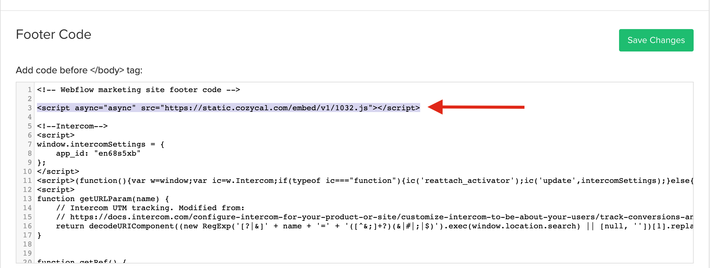6. Scroll down and paste your code in the Footer Code, then click on Save Changes .