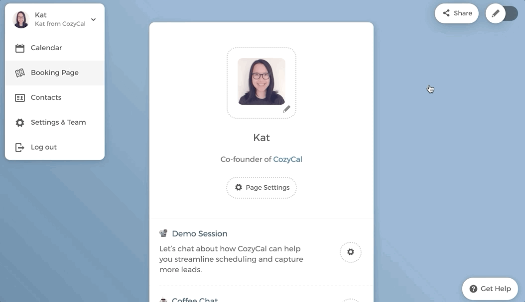 3. On your Booking Page , click on the Share button, and Copy Link .