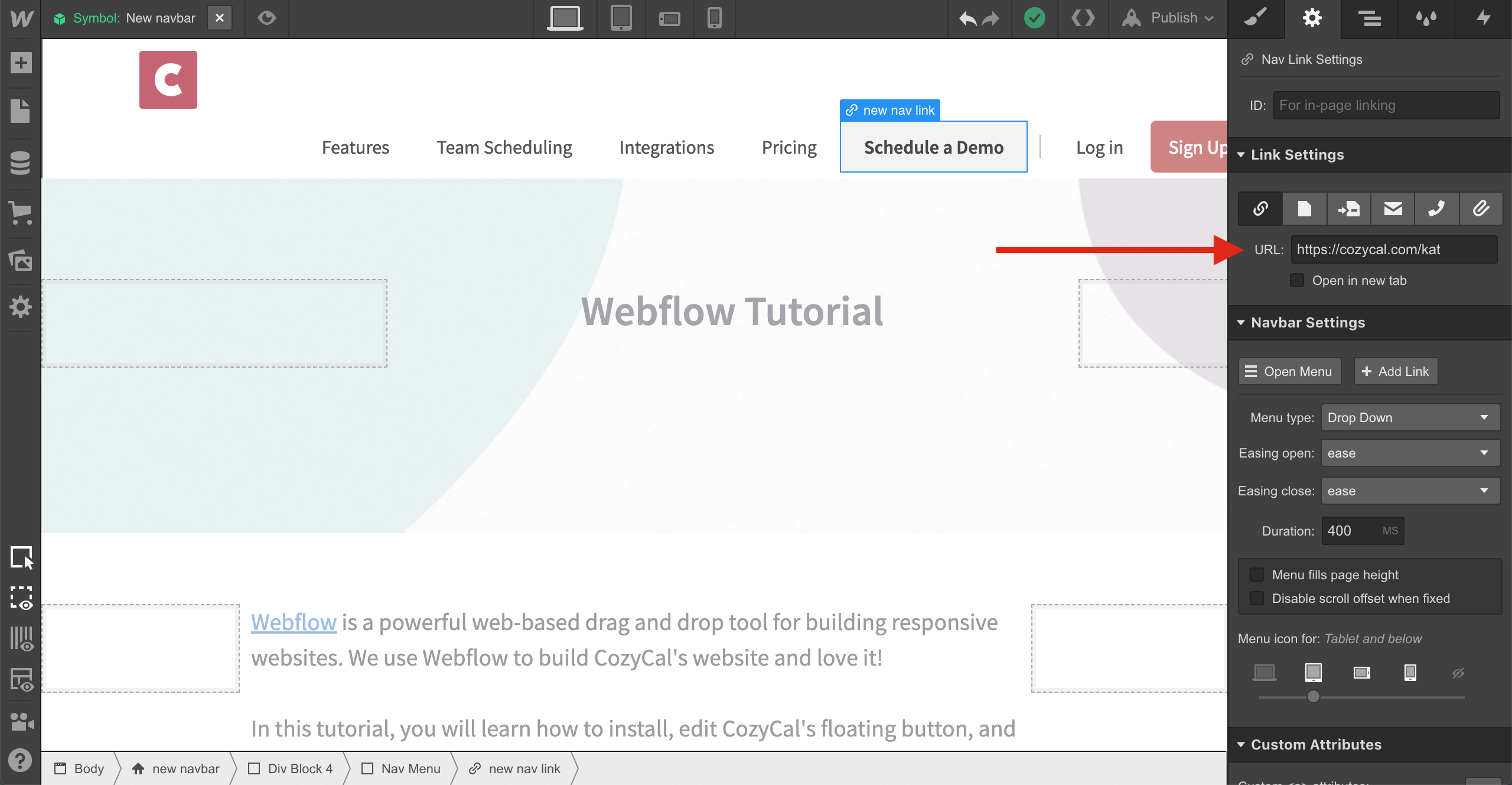 It's easy to install CozyCal on your Webflow website. All you need is a short piece of code. You can follow the steps below to get started:
